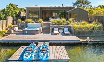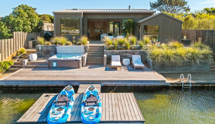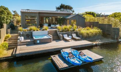 Nothing surpasses excellence and that is precisely what is being offered here. Exceptional construction meets the serenity of transformative nature. This is where every detail has been considered, curated and fully realized so you can arrive and immediately settle into the rhythm of Seadrift living. Instantly enjoy your morning coffee on the sunlit deck, fireside gatherings on the water and kayak or SUP on the lagoon. This is also where health and wellness meets pristine living. The newly built Seadrift residence embodies a renaissance of coastal living you have been waiting for. Enjoy the rare and coveted access to all three bodies of water: the Seadrift Lagoon, a temperate 1.5-mile saltwater expanse just beyond your back door, your saltwater almost endless pool; the Bolinas Lagoon, offering unparalleled opportunities for wildlife watching with family on your kayaks; and the private Seadrift beach, mere steps away for endless days WITH the ocean. This extraordinary combination of location and lifestyle is seldom available, especially in a move-in-ready, newly constructed home of this caliber. Thoughtfully designed, the residence features top-of-the-line Miele and Thermador appliances, blending refined luxury with everyday functionality. Outdoor living is equally compelling, with a sun-drenched ipe deck, two fire pits, BBQ area, and private dock—perfect for entertaining or unwinding in total privacy. It is also off the grid when necessary with two Tesla power walls. This deck benefits from exceptional western exposure, capturing more natural light than most homes in Seadrift road and delivering unforgettable sunsets. A rare offering where craftsmanship, setting, and lifestyle converge seamlessly. An exceptional opportunity to own one of Seadrift’s most complete and compelling coastal retreats.