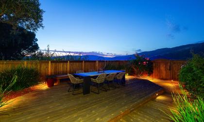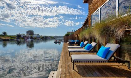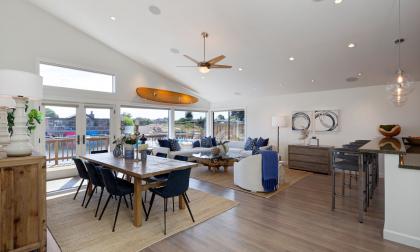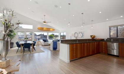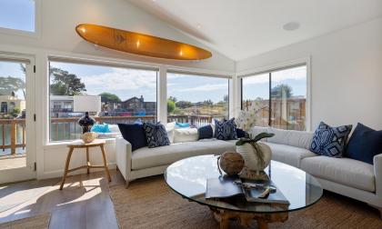 “Soul Surfer” is the name given to this modern luxury beach house. It rests perfectly between two beautiful lagoons. On one side of the home, the formal living room opens to Marin’s protected bird and seal sanctuary, the Bolinas Lagoon. More dramatic than pelicans diving are the majestic mountains of the Golden Gate Park which surround this house. This house has ideal indoor/outdoor living spaces. It happens to be surrounded by water on the tranquil Seadrift Lagoon as well. The Master Bedroom is nothing short of amazing. It perfectly frames this wonderland of water. The Seadrift Lagoon itself acts like the world’s largest salt water pool, with its gentle lapping water and purple sunset skies. What makes lagoon life so special is having the best of both worlds… access to a private beach and yet the sanctuary to a private lagoon perfect for swimming or paddle boarding. Never forget to feed your soul and come enjoy the dream house that is 145 Dipsea Road.