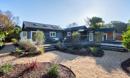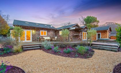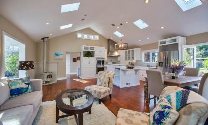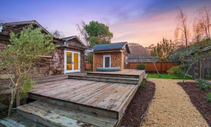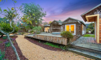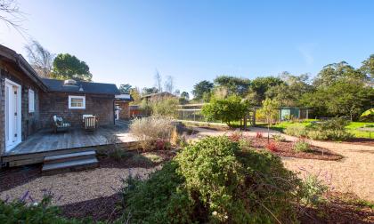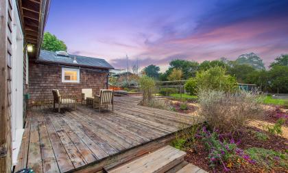 Situated on over half acre this contemporary turnkey house has all new interior paint, new wood floors, and updated baths. The high-end kitchen has stone counter tops, built in Thermador oven and range, and is open to the living room, dining area and wood burning stove. The living room has beautiful bay windows and window seats. The french doors open to a large expansive deck with a sunken hot tub. The grounds are professionally landscaped and irrigated. There is an abundance of Meyer Lemon trees, a chicken coop, rabbit cage, and raised garden beds. The property is ideally located close to the hiking trails of Palo Marin and just a jaunt to Bolinas Beach and downtown.