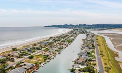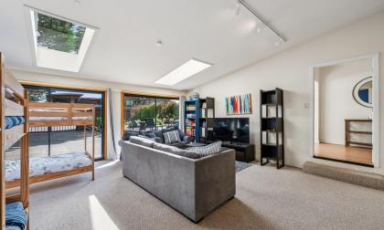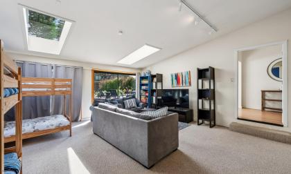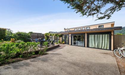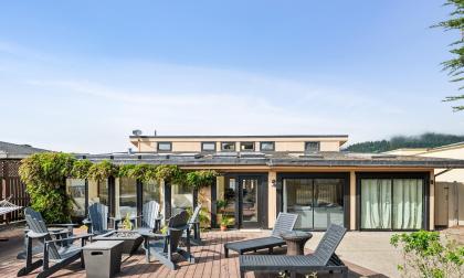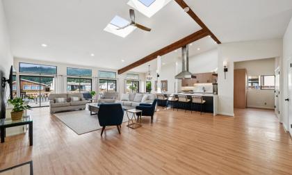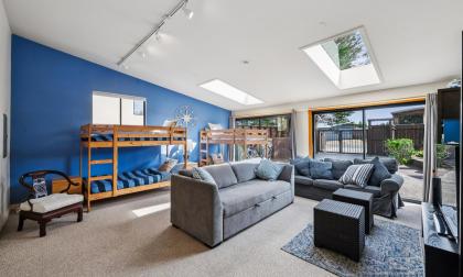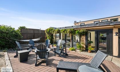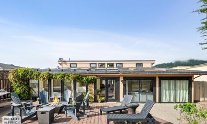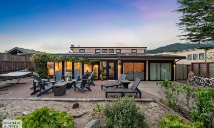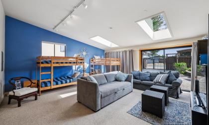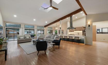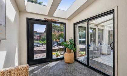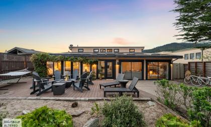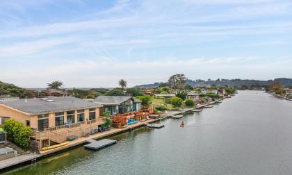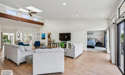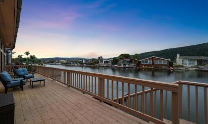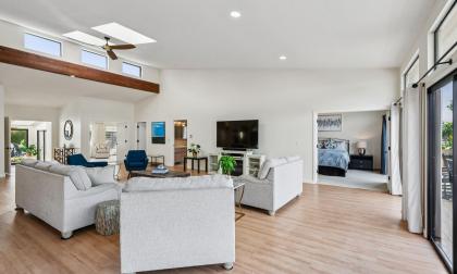 Spacious lagoonfront home with sweeping views of the Foothills.  There are 3 bedrooms and 2 full bathrooms.  Sleeps 10 in 1 king, 1 queen, 4 twins (bunkbeds) and 1 double pullout in the sunroom.  Home features dishwasher, stove, oven, washer/dryer, large TV and blue ray DVD player. Beautiful, private interior courtyard with garden, gas BBQ on the lagoon side deck. Pets possible.